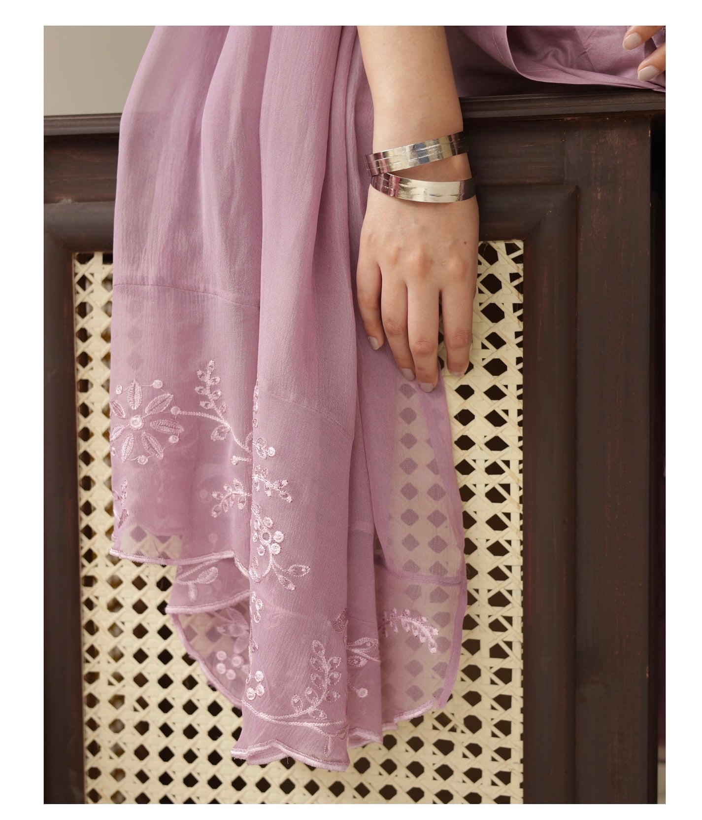 Paired with an embroidered chiffon dupatta and dyed trouser, this outfit is perfect for both casual and evening winter gatherings — a timeless choice for women who appreciate graceful style.
