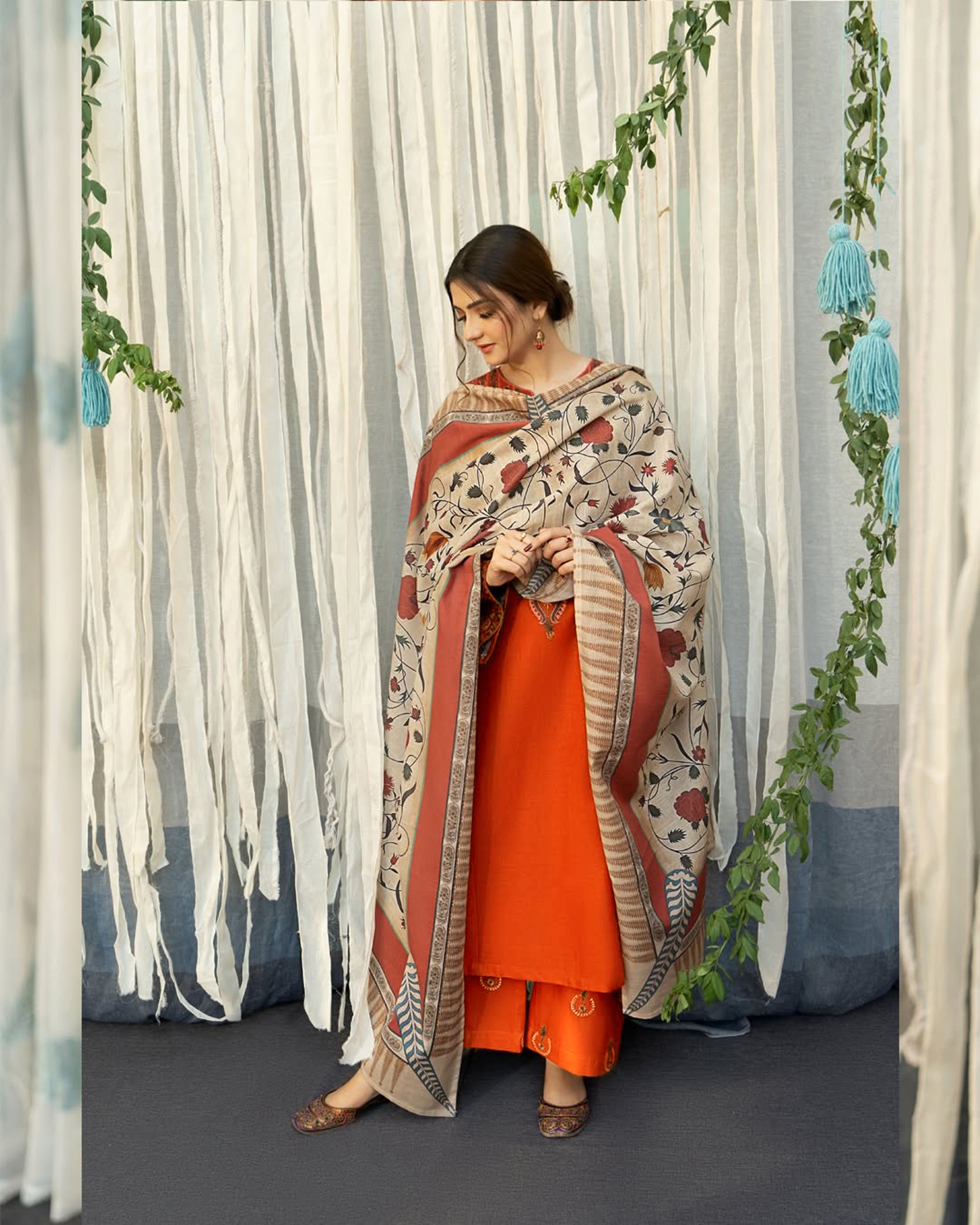 - Voile Slub Dupatta: Elegant voile slub dupatta with a luxurious texture that completes the look